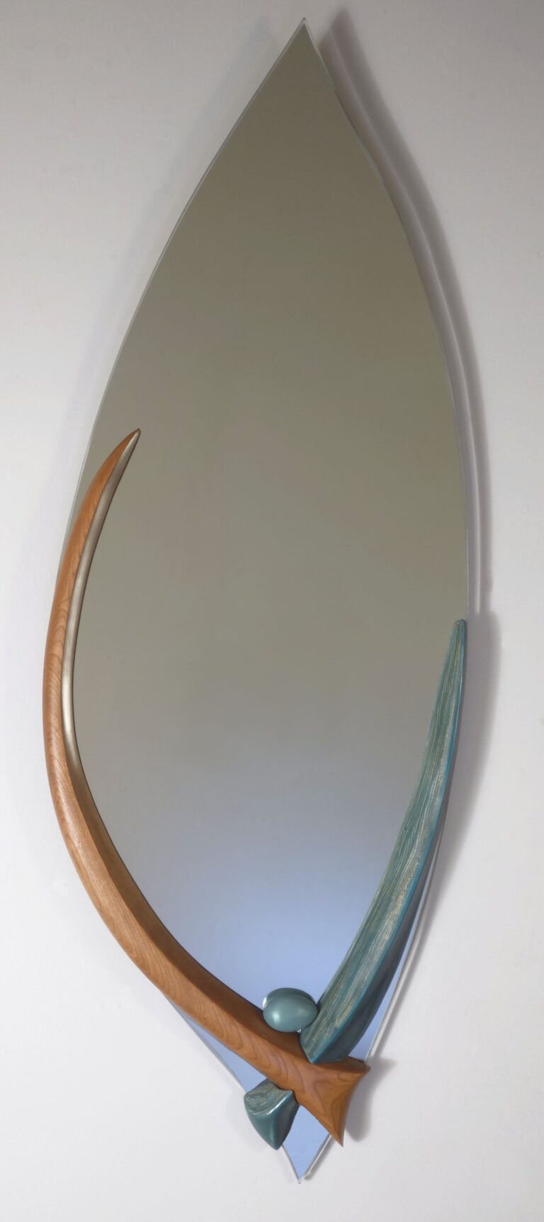 Robin’s Egg H35" x W21" $1,220 Signs of spring's arrival are evident in this graceful mirror, framed in cherry wood and sculpted clay with a subtle blue-green striped glaze. Ready to hang. IN STOCK Ordering information